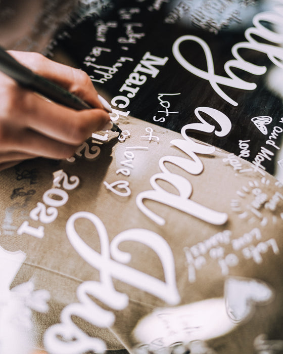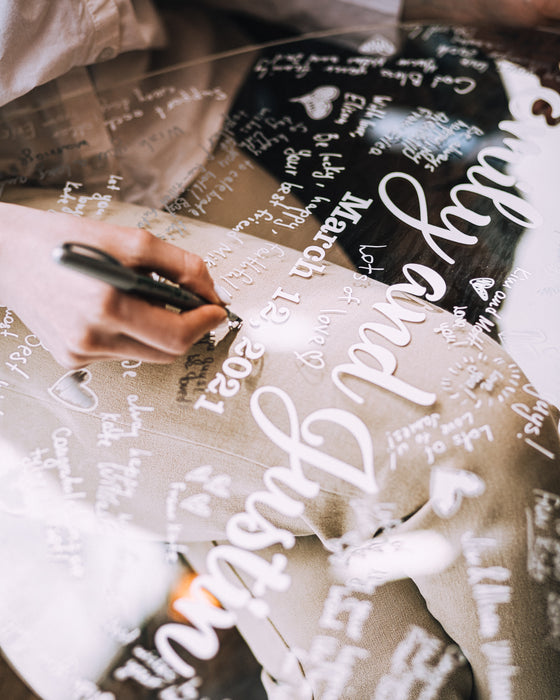 Nos livres d'or sont réalisés en acrylique et en personnalisation (vos noms et date), cela se fait à la peinture🎨.